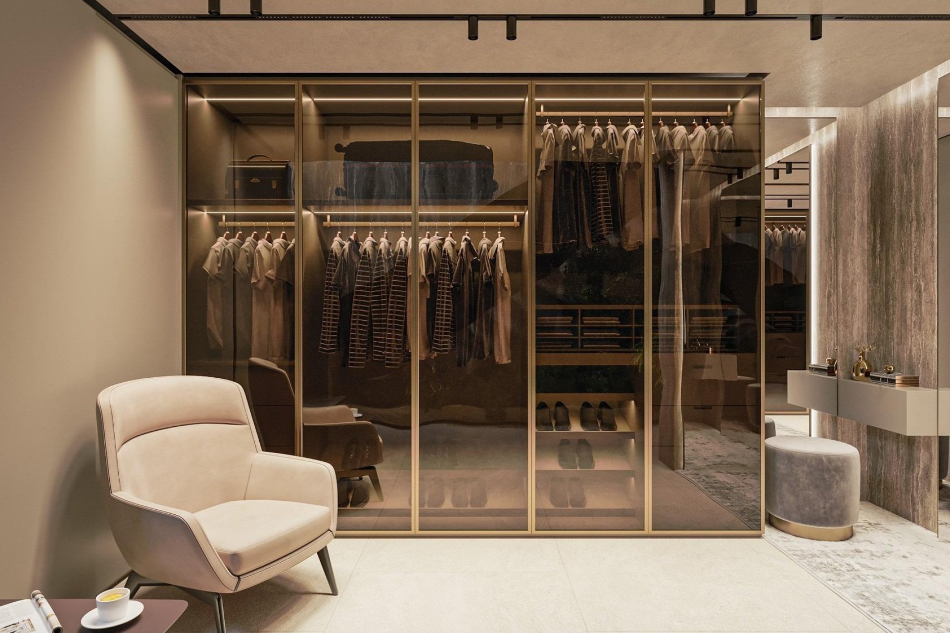 La propiedad ofrece cuatro amplios dormitorios con baño en suite, cada uno diseñado como un refugio privado con acabados de alta calidad y acceso directo a las terrazas. La suite principal destaca por su vestidor y su lujoso baño con bañera independiente con vistas al mar, creando una atmósfera verdaderamente relajante inspirada en los entornos de los spas de lujo.