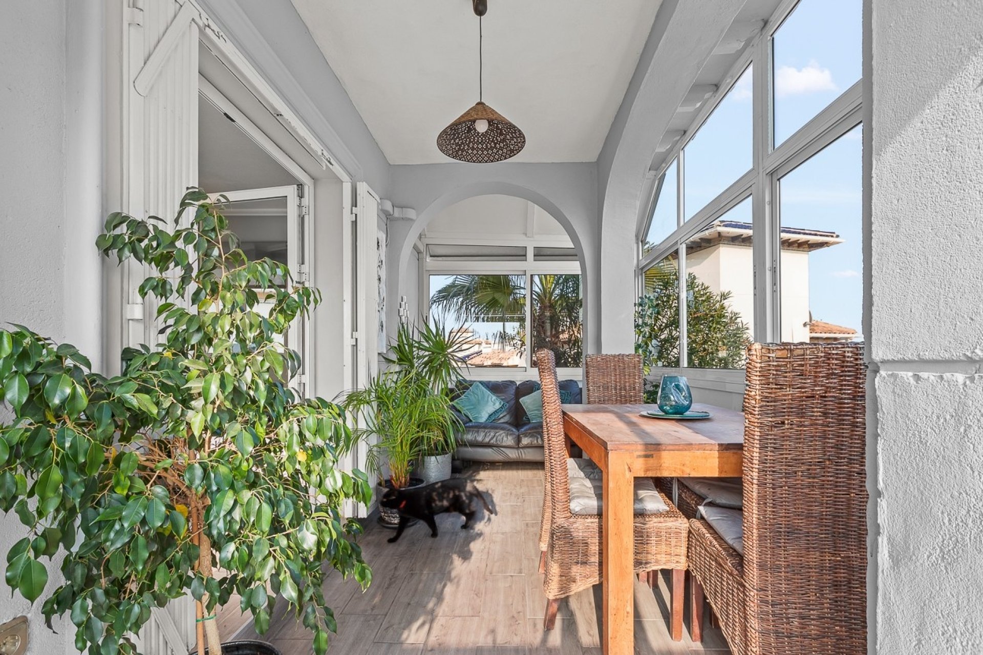 Ubicada en la prestigiosa Playa Flamenca, esta villa independiente orientada al sur ofrece la combinación perfecta de elegancia y versatilidad. La villa se encuentra en una amplia parcela que permite elegir entre diferentes zonas de estar. En el interior, la planta principal cuenta con un luminoso y espacioso salón con zona de comedor, un baño de invitados renovado con buen gusto y una cocina moderna completamente equipada e independiente. En la primera planta, se encuentran dos dormitorios y el baño familiar, junto con un salón de día que funciona como una agradable extensión del dormitorio principal. El rasgo más destacado de esta propiedad es su apartamento completamente independiente ubicado en la planta baja, con acceso tanto interno como externo. Este apartamento totalmente amueblado cuenta con dos dormitorios, un baño, su propia cocina completamente equipada y acceso directo a la calle, lo que lo convierte en el alojamiento perfecto para invitados o en una excelente oportunidad de alquiler privado. La villa dispone de aire acondicionado en todas las estancias, garantizando confort en cualquier estación del año, y la chimenea eléctrica crea un ambiente acogedor en las noches más frescas. En el exterior, la piscina privada invita al descanso, mientras que la terraza es ideal para disfrutar de las vistas del hermoso jardín y de un estilo de vida relajado al aire libre. El solárium ofrece vistas panorámicas al mar y al paisaje circundante. Ubicada a menos de cinco minutos a pie de La Zenia Boulevard y a 20 minutos de la playa, esta villa ofrece la combinación perfecta de lujo, comodidad y flexibilidad, convirtiéndola en una opción excepcional para quienes buscan un estilo de vida mediterráneo. No dude en ponerse en contacto con nosotros para programar su visita; estaremos encantados de recibirle y mostrarle todo lo que esta propiedad tiene para ofrecer.